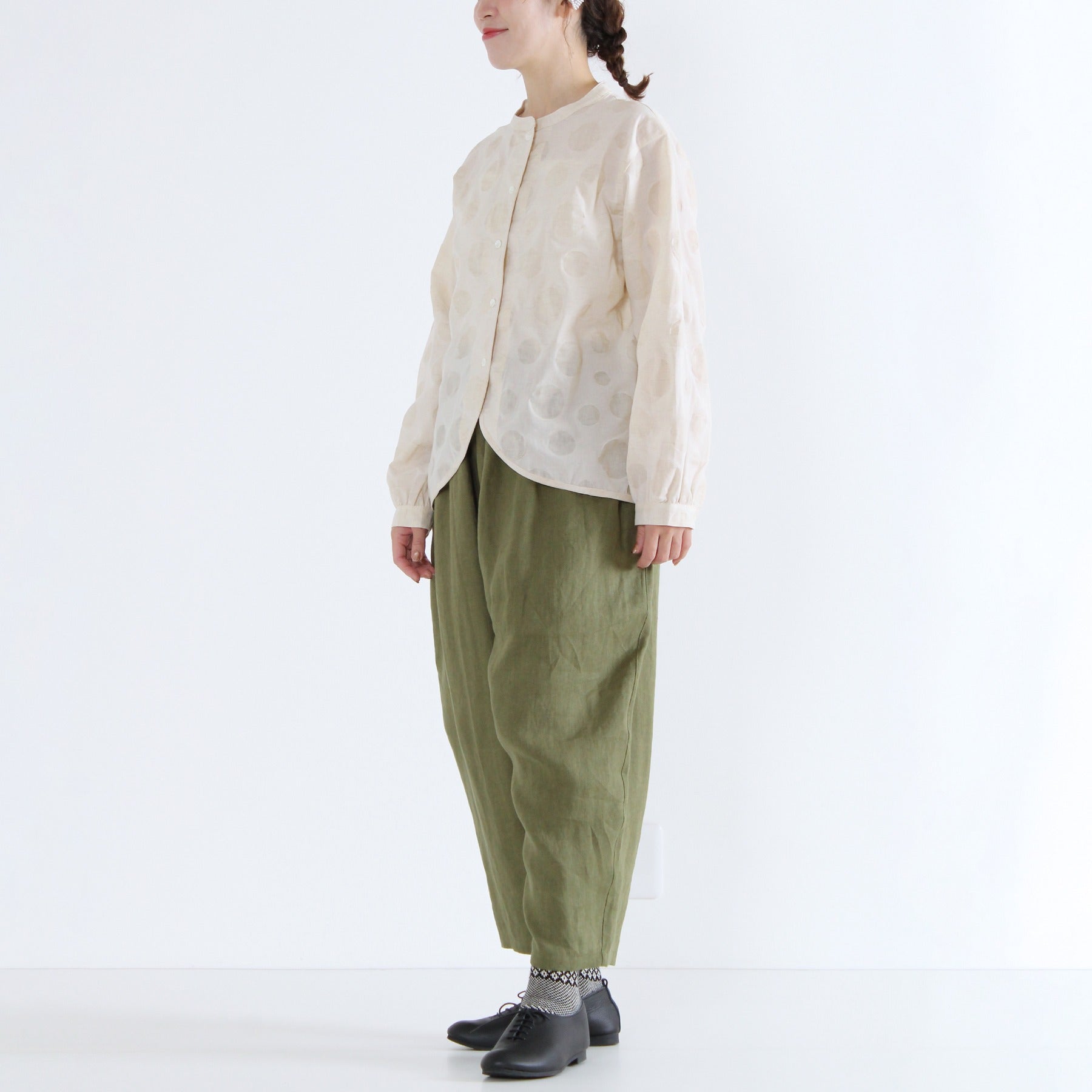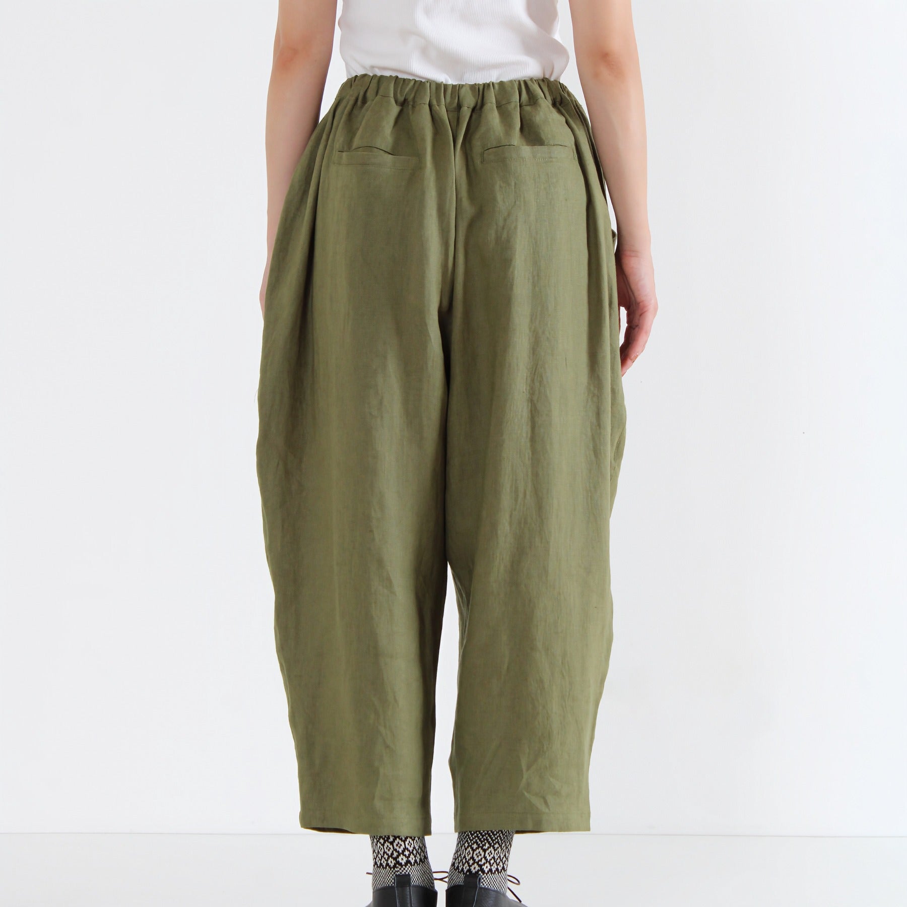 ほどよい厚みがあり目の詰まった肉厚な強撚リネンを使用した、ista-ire定番のテーパードパンツ。ウエストがぐんと伸びる仕様で快適にフィットし、太ももまわりにゆとりを持たせつつアンクル丈ですっきりとしたシルエットに仕上げました。日常使いはもちろん、きれいめにもカジュアルにも合わせやすい一本です。
