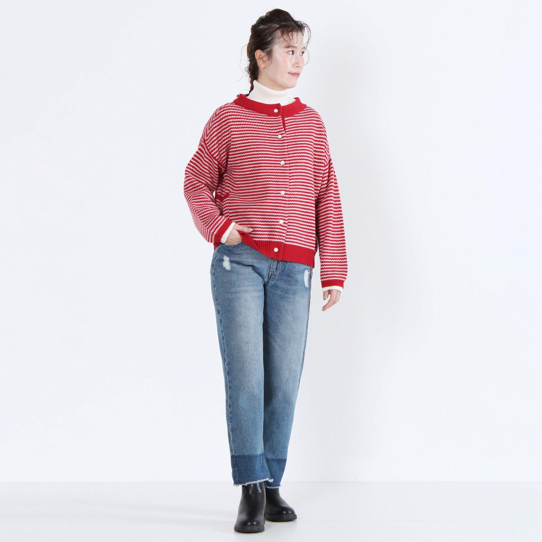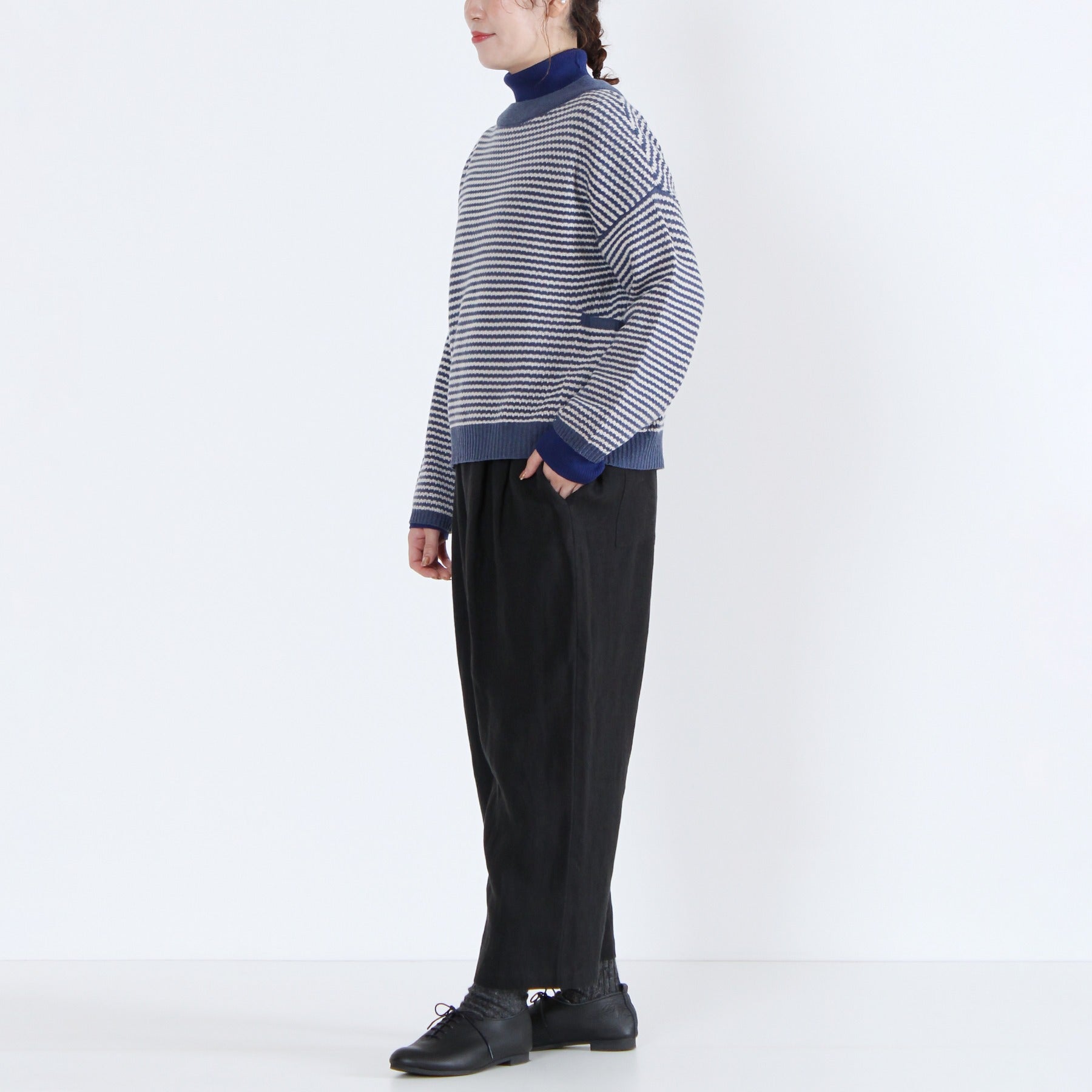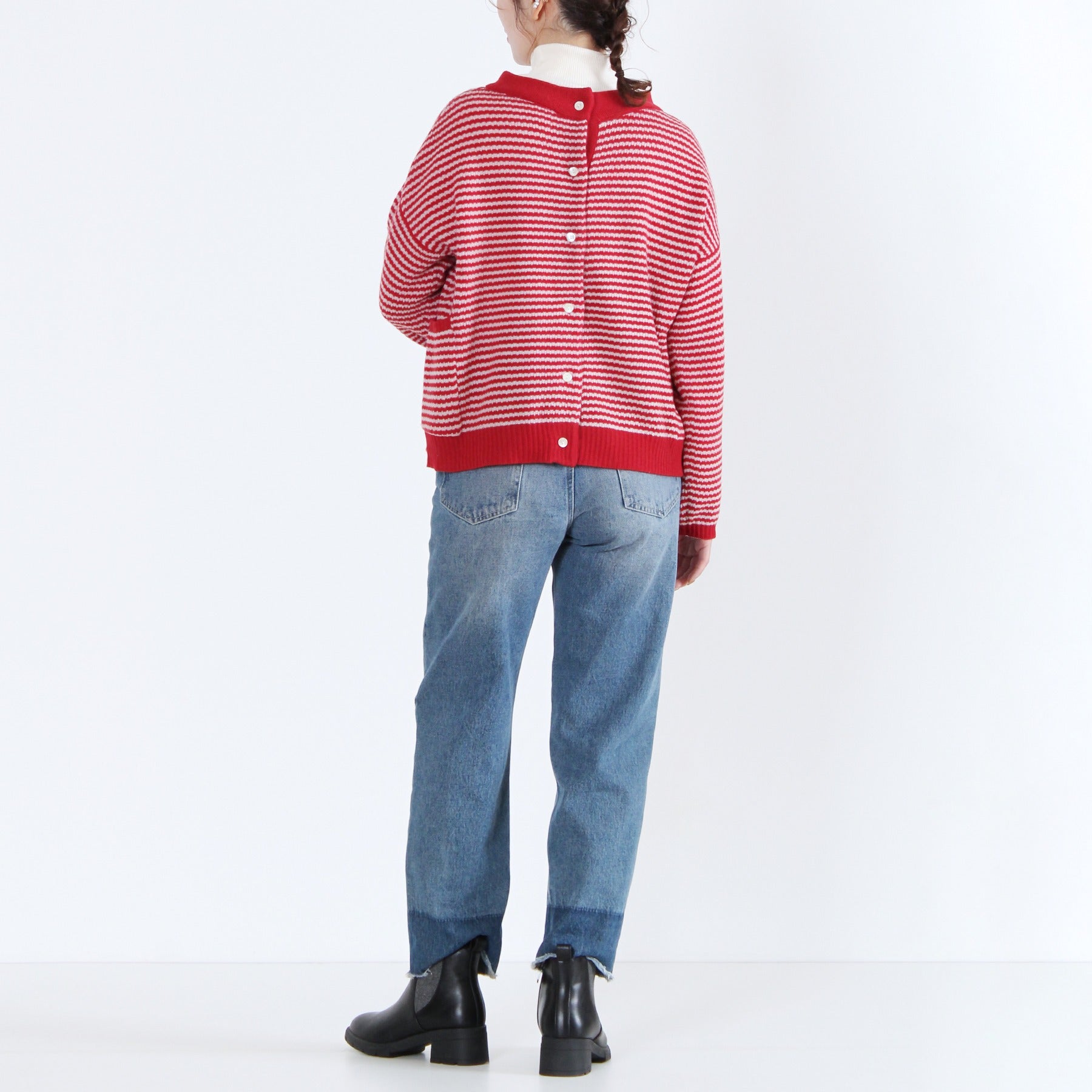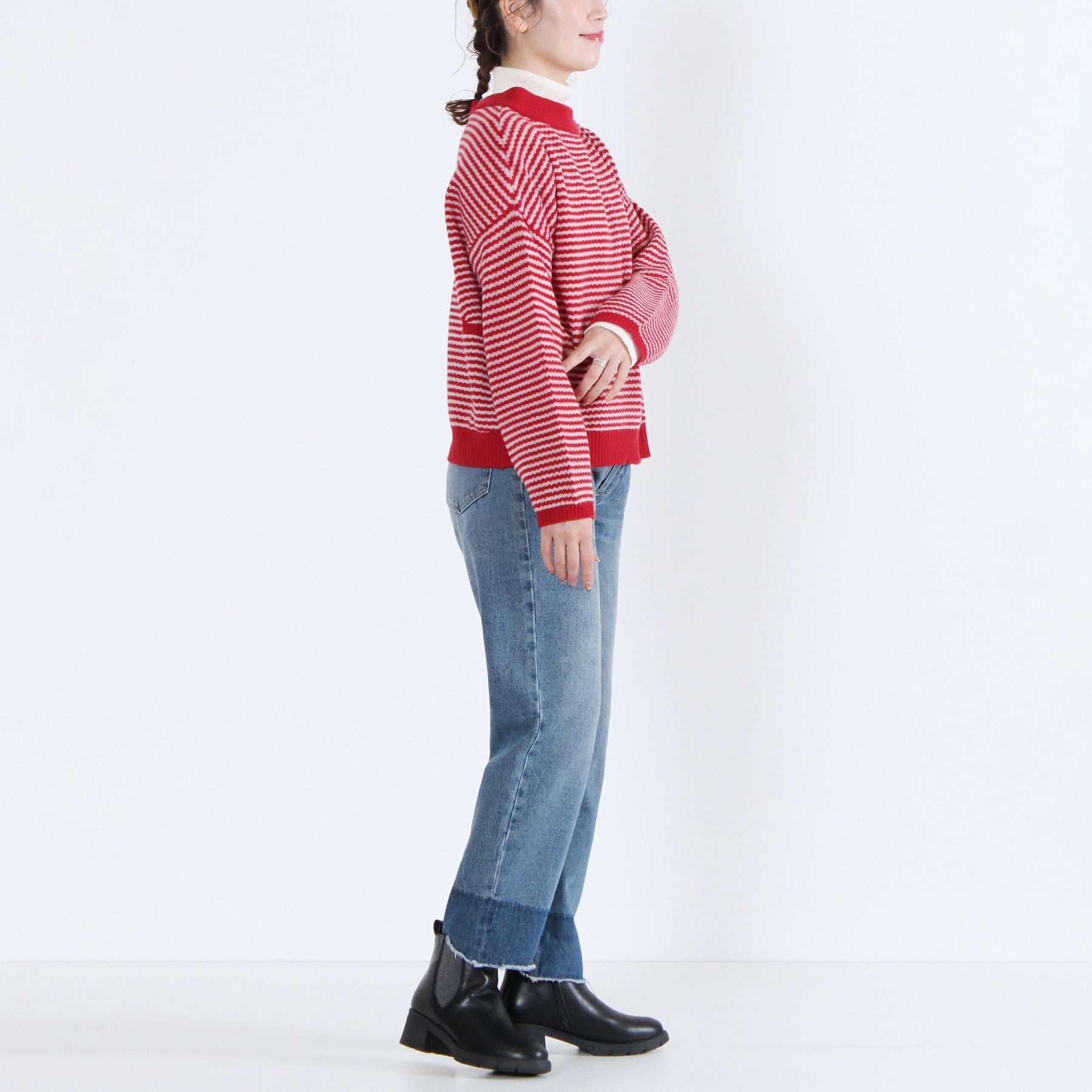 上質なイタリー糸で編み上げた、2WAY仕様のニットカーディガン。柔らかくしなやかな素材感で、季節の変わり目にも軽く羽織るだけで品のある印象を演出します。前後どちらでも着られるデザインと左右のパッチポケットが機能性とデザイン性を兼備。無地カラーと細ボーダーの多彩なカラーバリエーションで、ベーシックからアクセントまで幅広く選べる定番アイテムです。