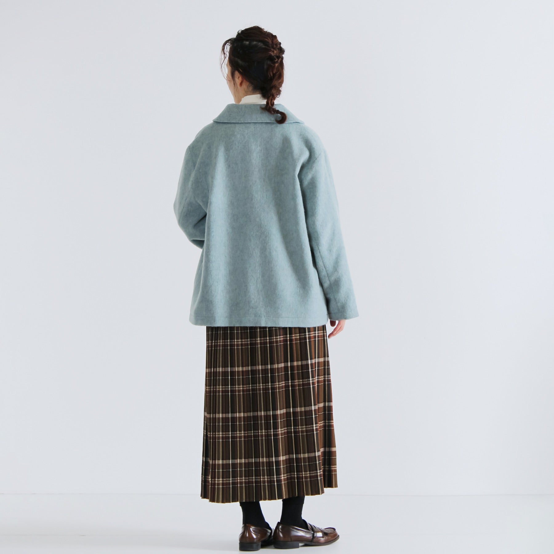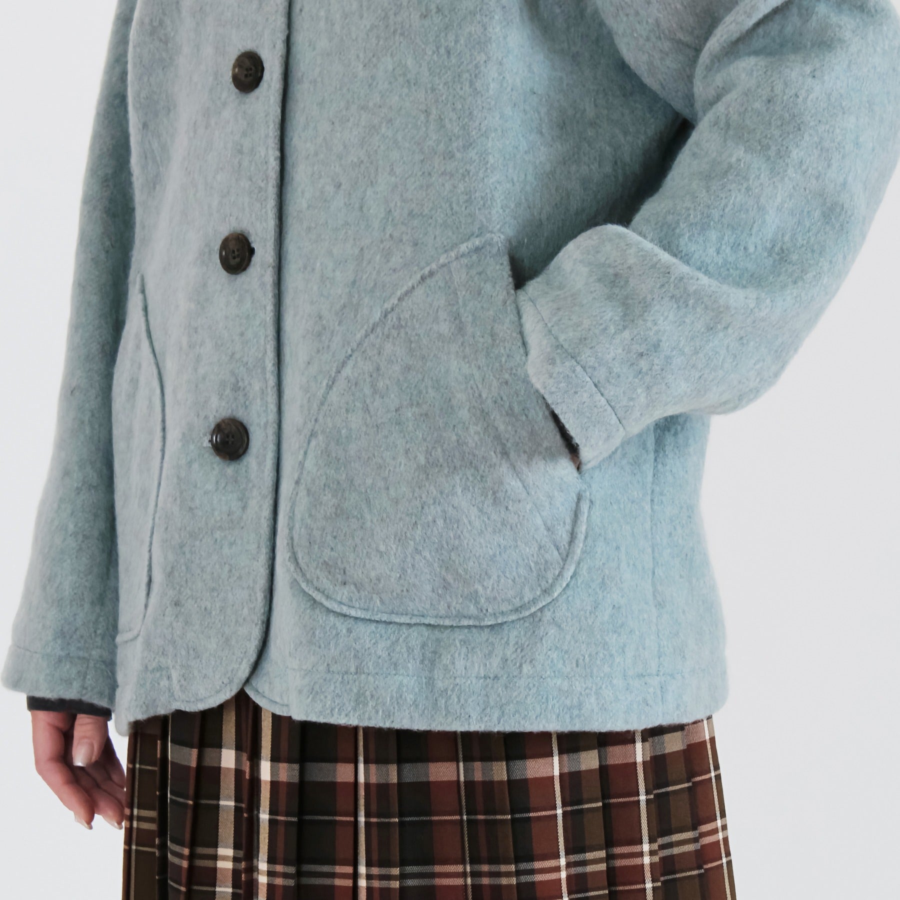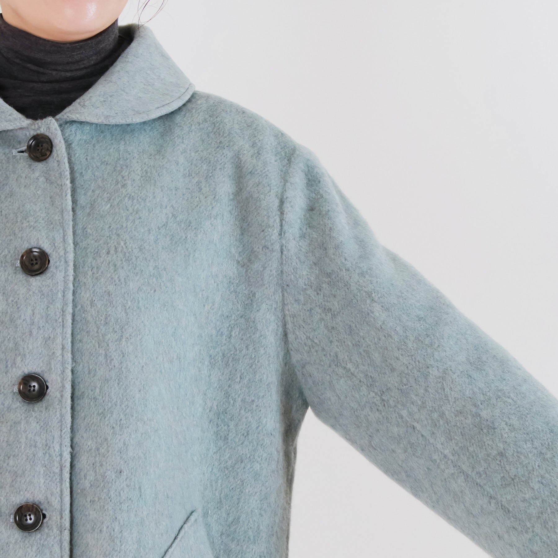 サイクルウールを使用した柔らかなウール混ビーバー素材のショールカラージャケット。丸みのあるショールカラーは高さがあり、首元までしっかり包み込んで冷たい風を防いでくれます。軽やかな生地感ながら身頃とアームホールにゆとりを持たせており、重ね着しても動きやすく快適な着心地に。両脇には手を入れやすいパッチポケットを配置し、腰回りをさりげなくカバー。滑りの良い裏地付きで、冬のデイリーアウターとして長く活躍する一着です。