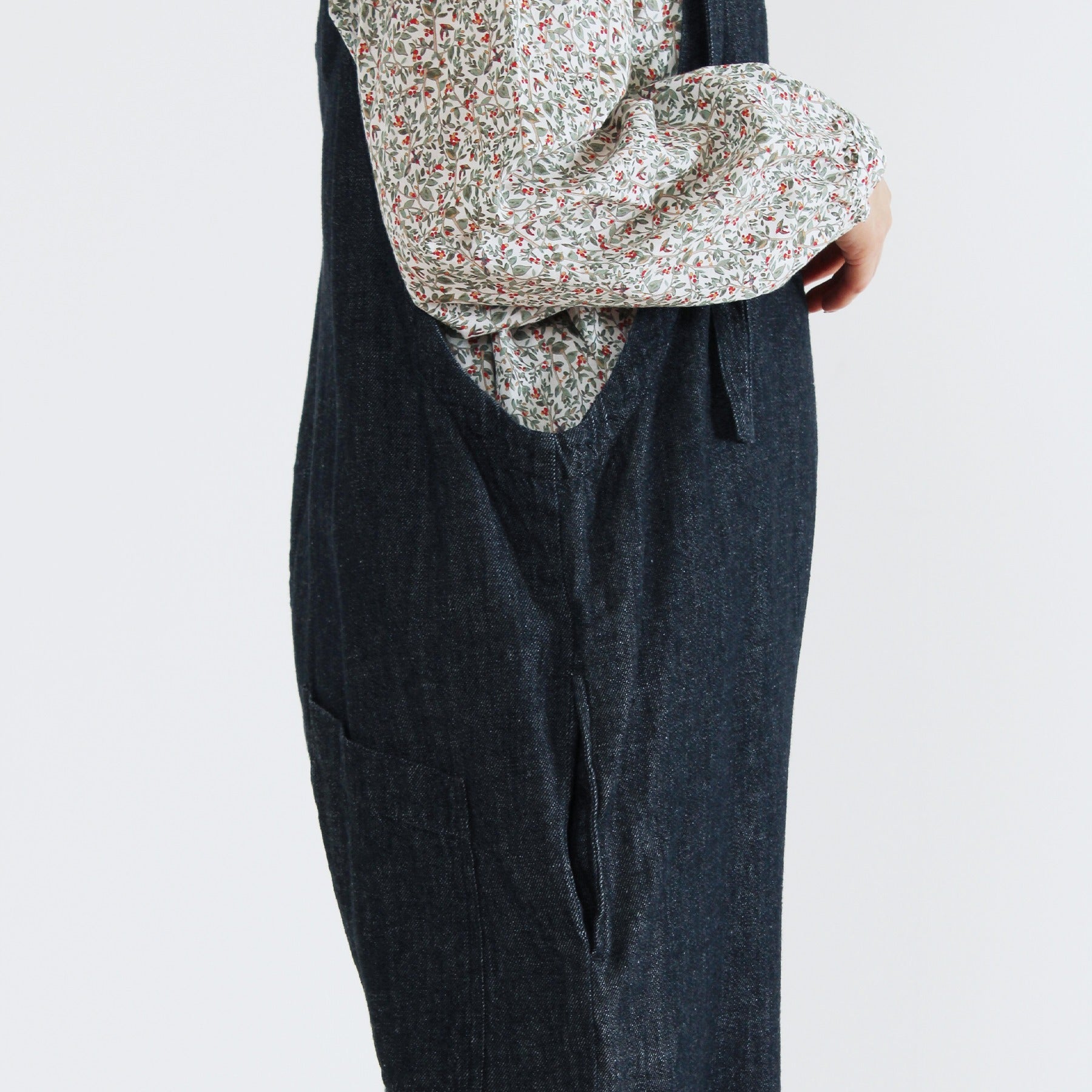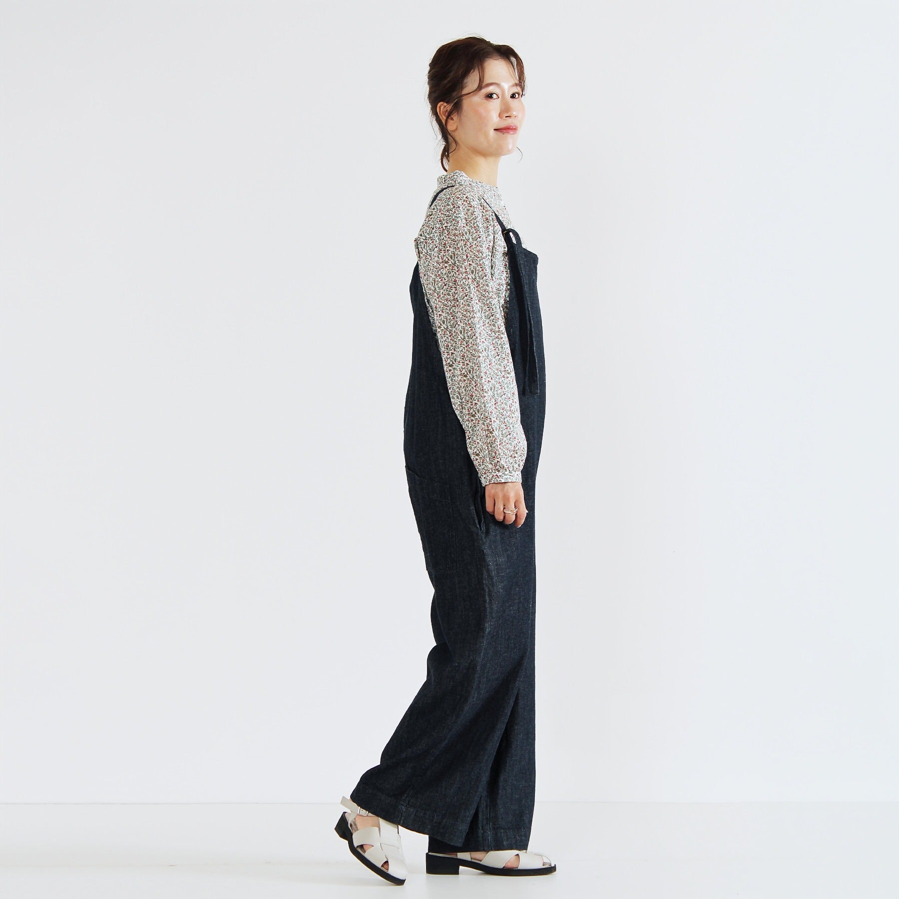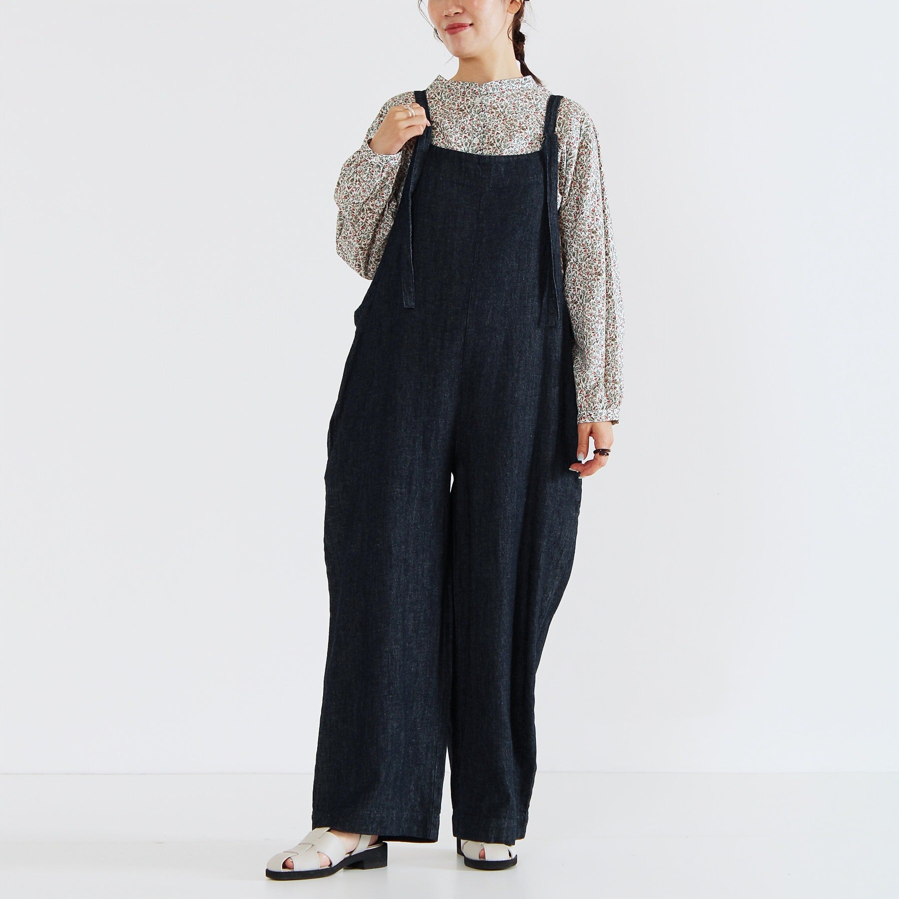 綿麻混 デニムサロパット 6.5ozコットンリネン甘撚りデニム使用