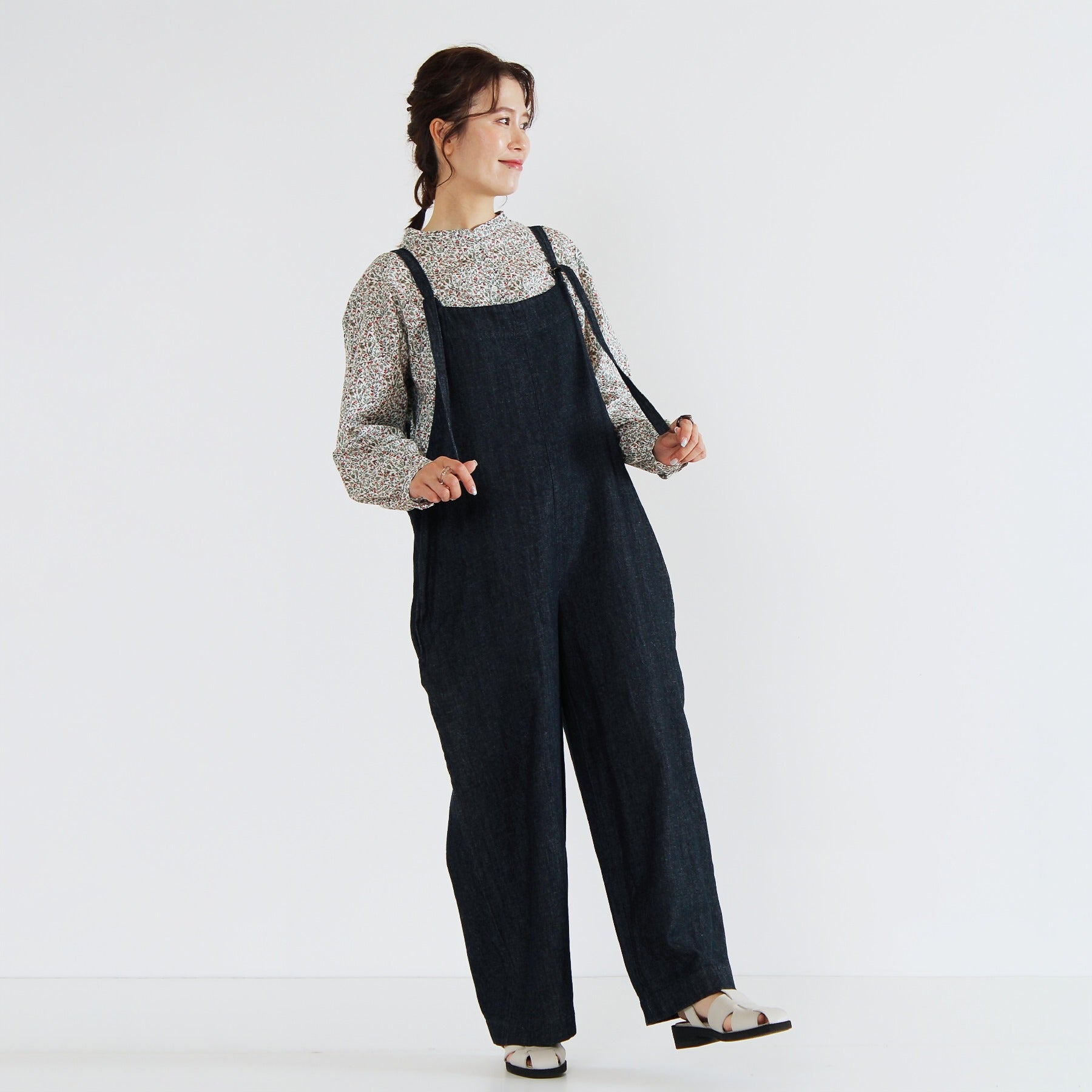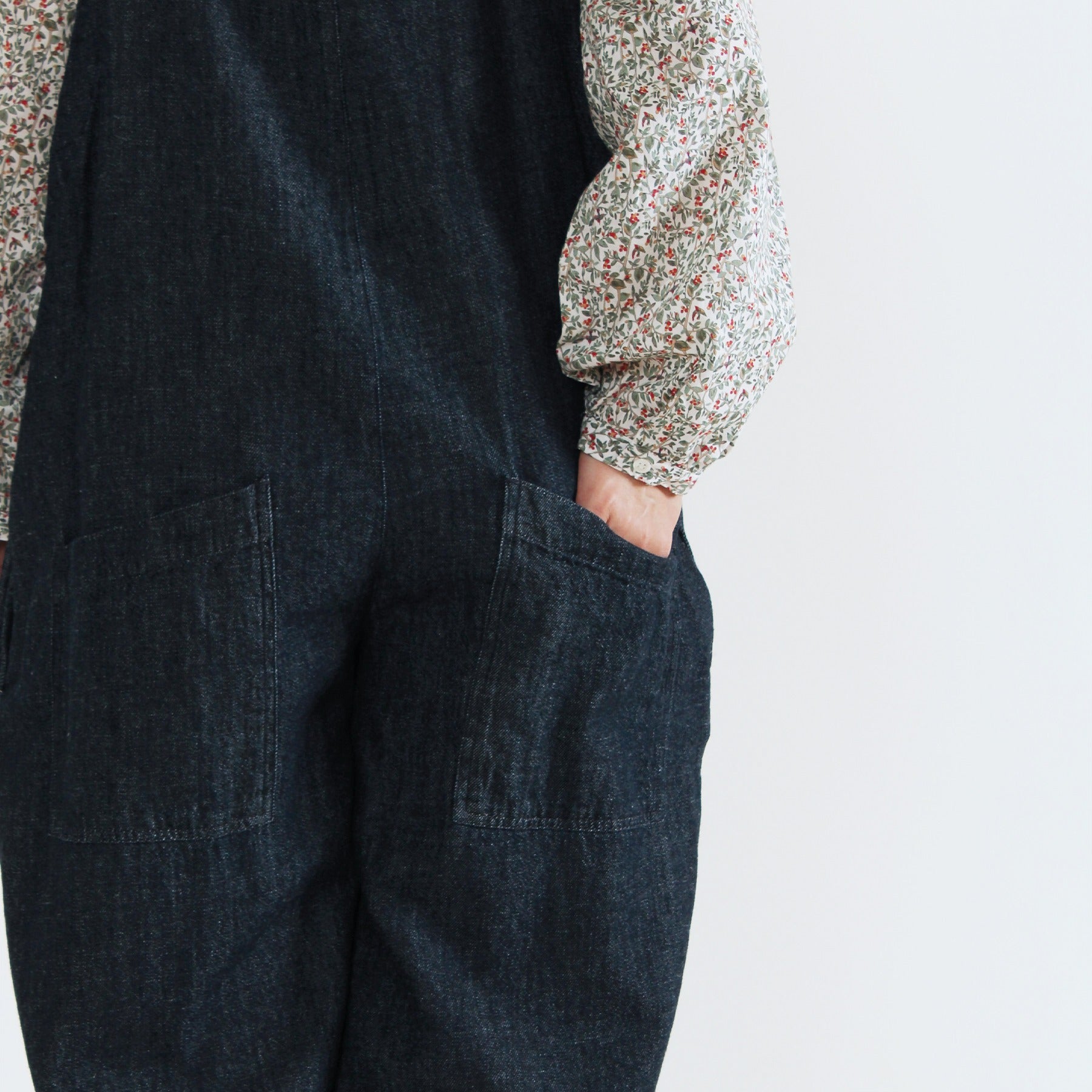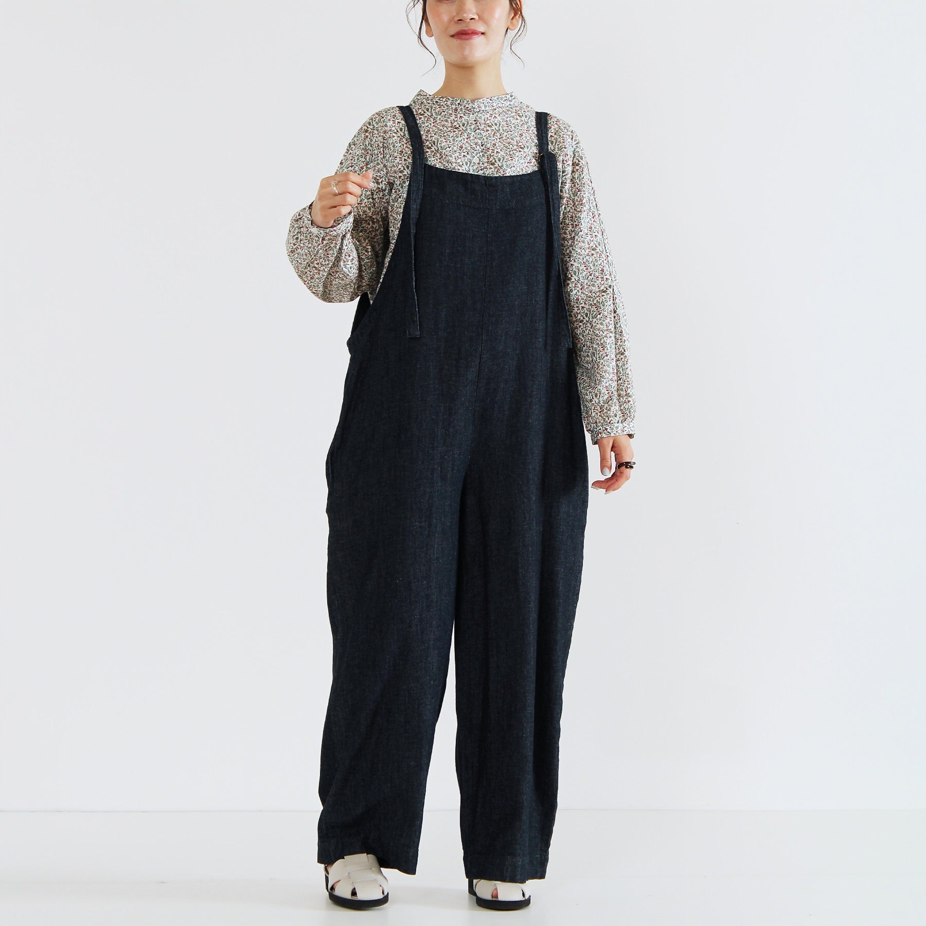 綿麻混 デニムサロパット 6.5ozコットンリネン甘撚りデニム使用