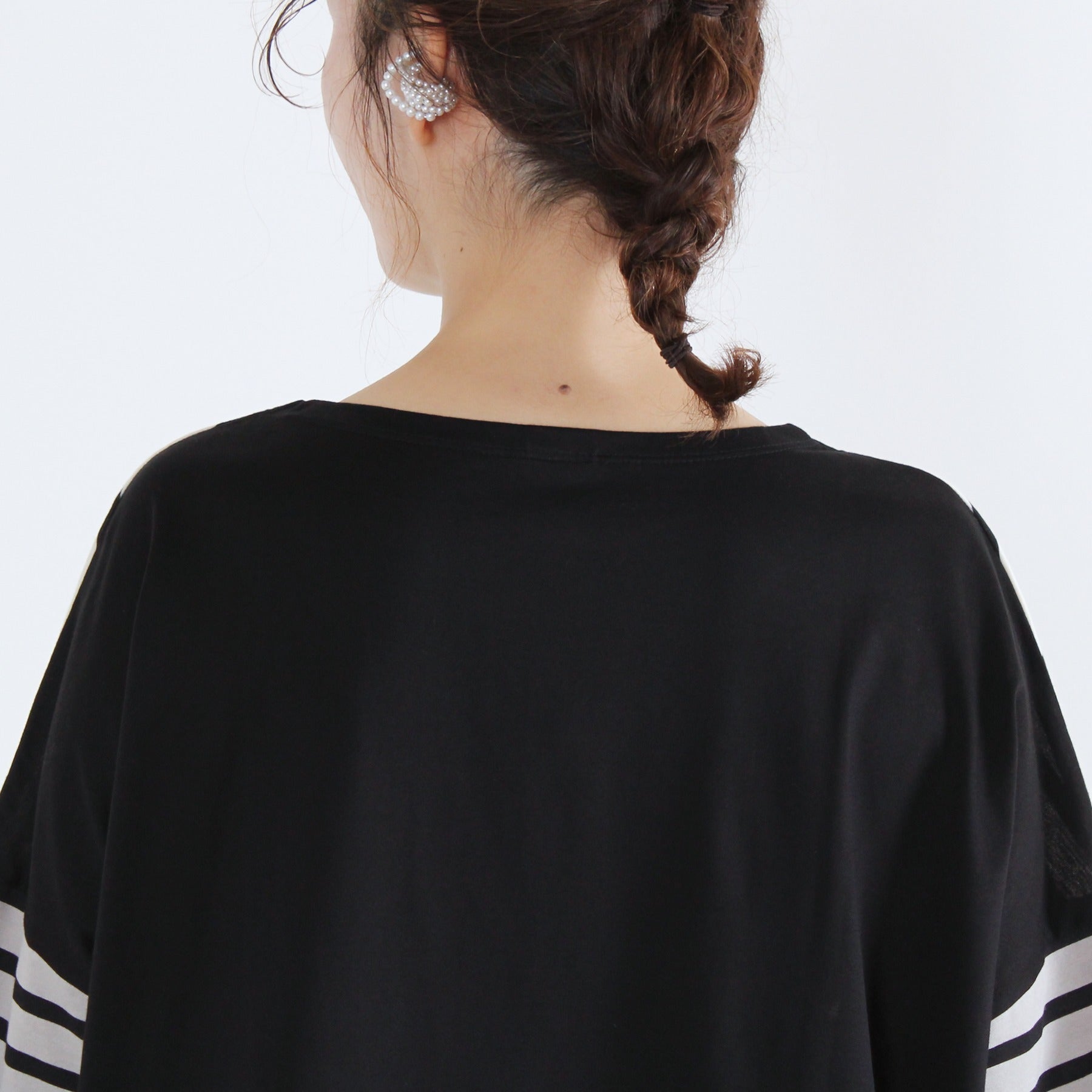 着丈:57-62cm(前後差仕様)、バスト:130cm、肩幅:67.5cm、袖丈:16cm、裾幅:62.5cm