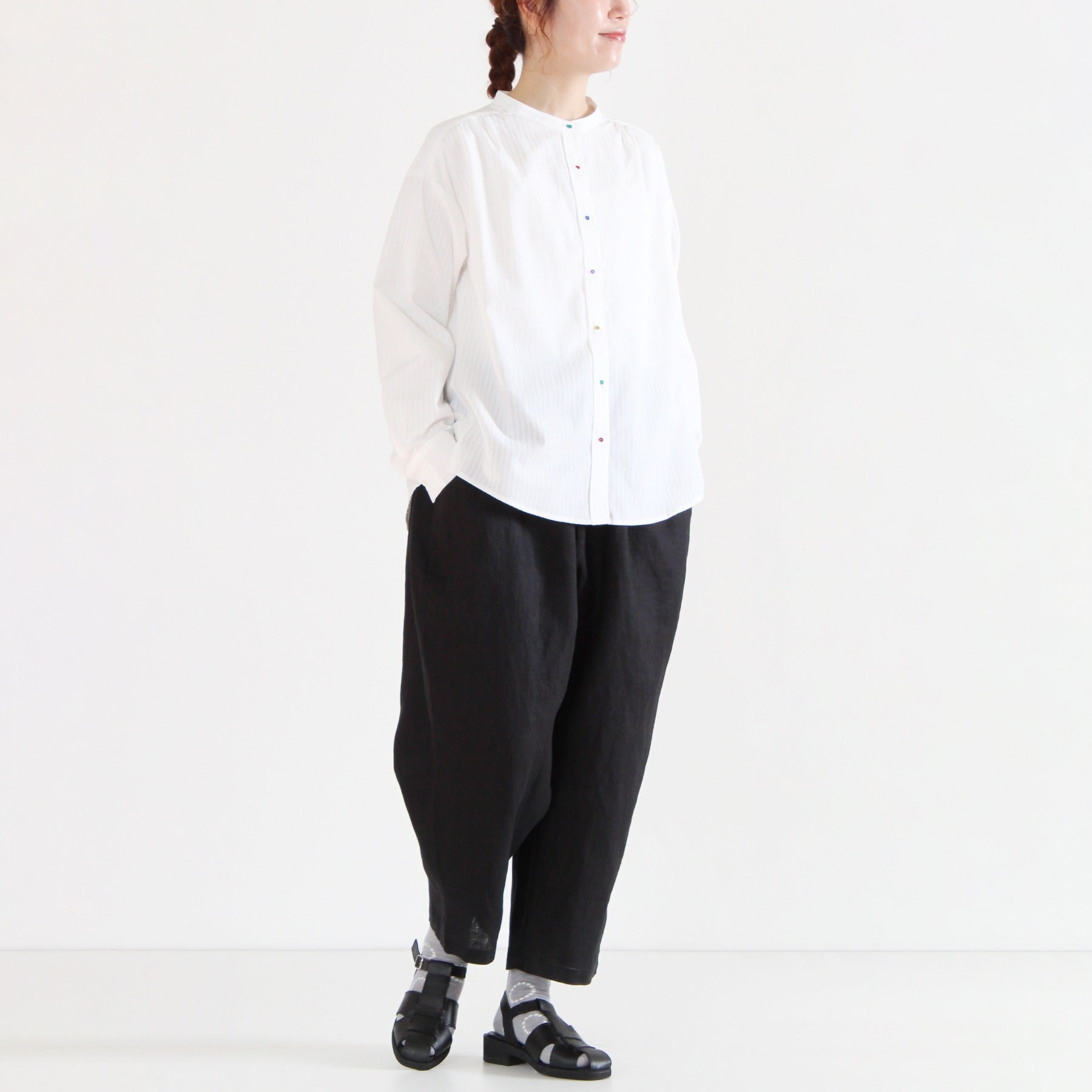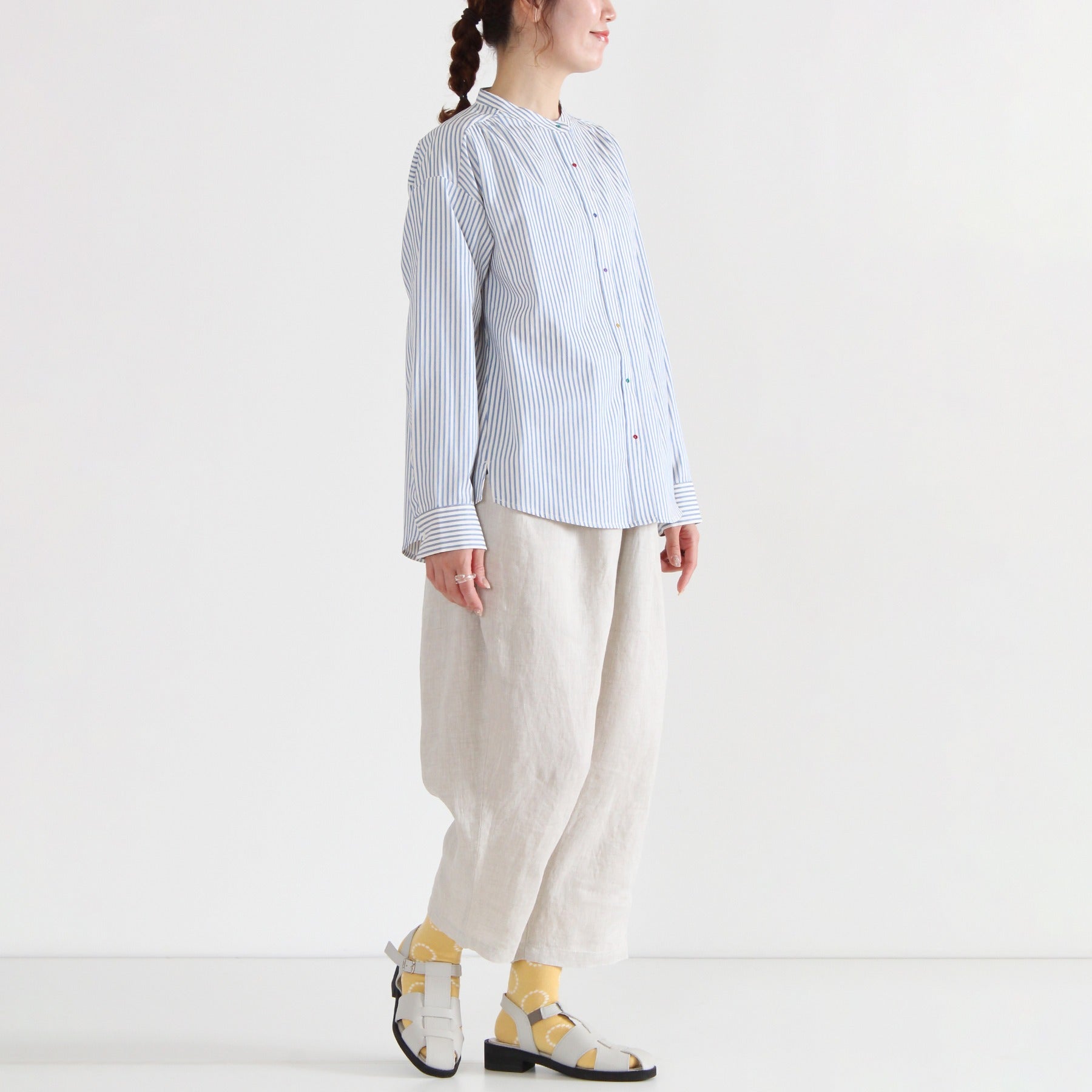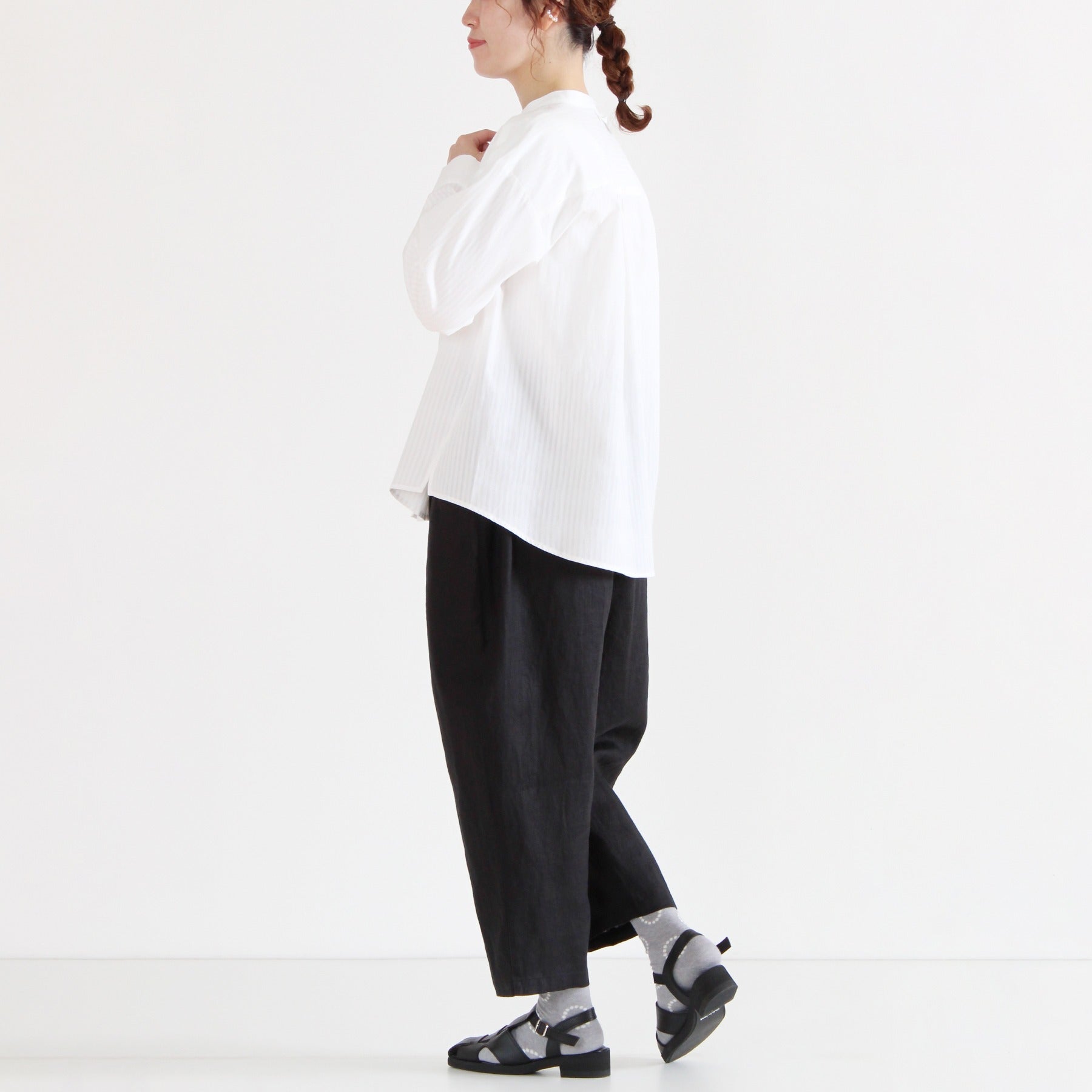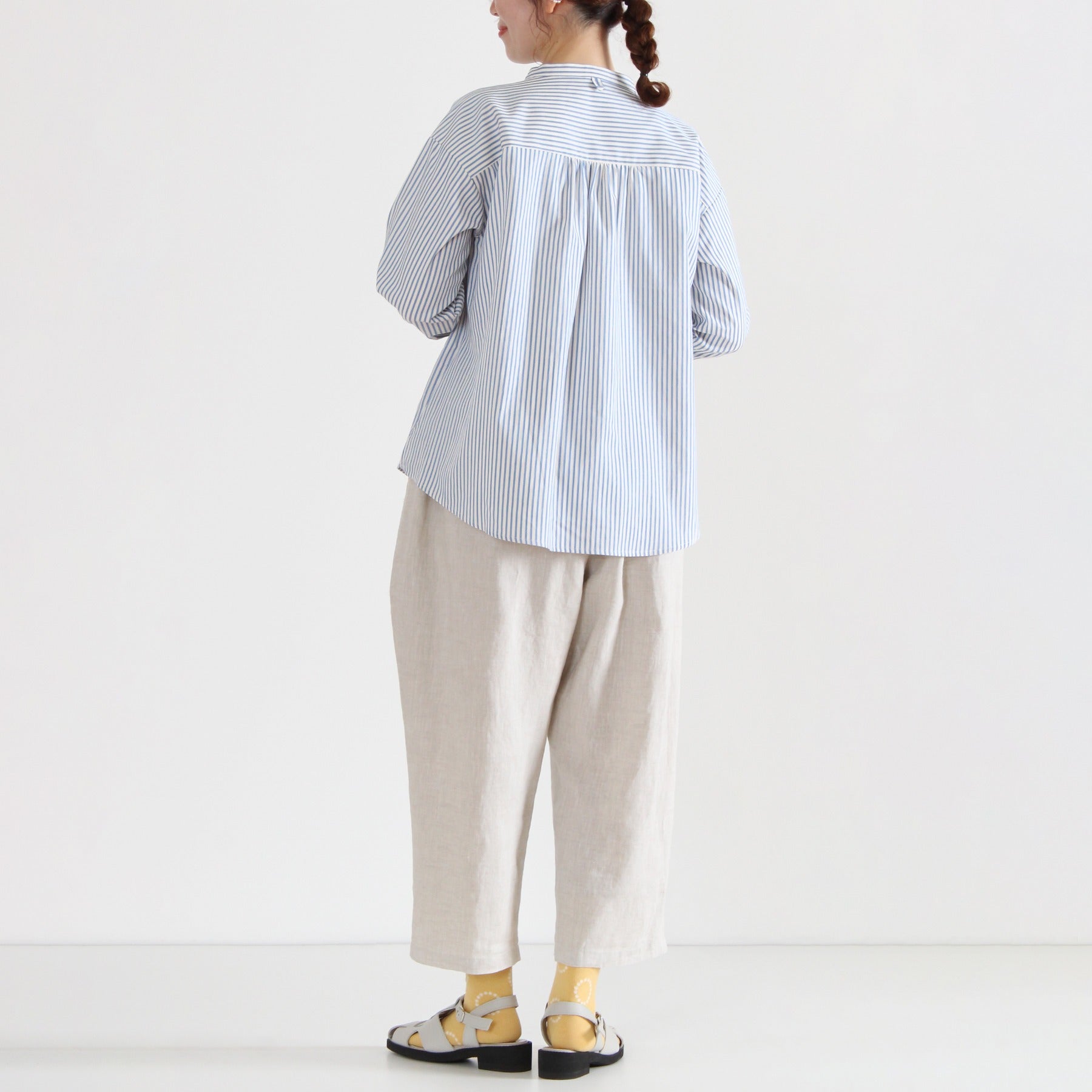 ほどよいハリとほのかなツヤのある平織りリネンを使用した定番パンツ。